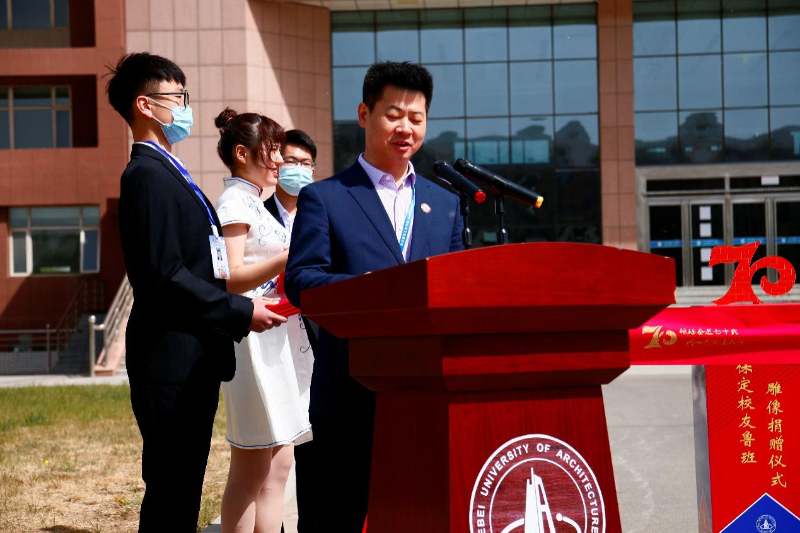 5月7日,保定校友恭祝母校70华诞鲁班雕像捐赠仪式在明德楼南广场举行。校党委书记王海龙,党委常委、副校长李敏,保定校友代表, 鲁班雕像设计者,学校相关部门负责人及二级院系师生代表等300余人出席了仪式。仪式由李敏副校长主持。