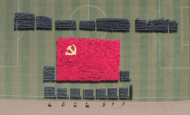伴着嘹亮的国歌声,军训总结表彰大会正式开始。本次军训主题为展军威传承红色基因,铸军魂献礼建党百年。