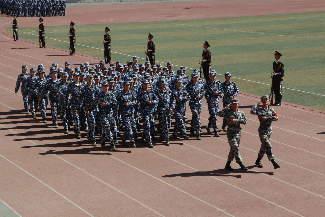 在庄严的升旗仪式后,7个受阅方队以饱满的精神状态接受检阅,受阅方队在教官的指挥下依次通过主席台。他们斗志昂扬、步伐整齐、口号响亮,彰显了铮铮铁骨的军人风采和激昂向上的精神面貌。
