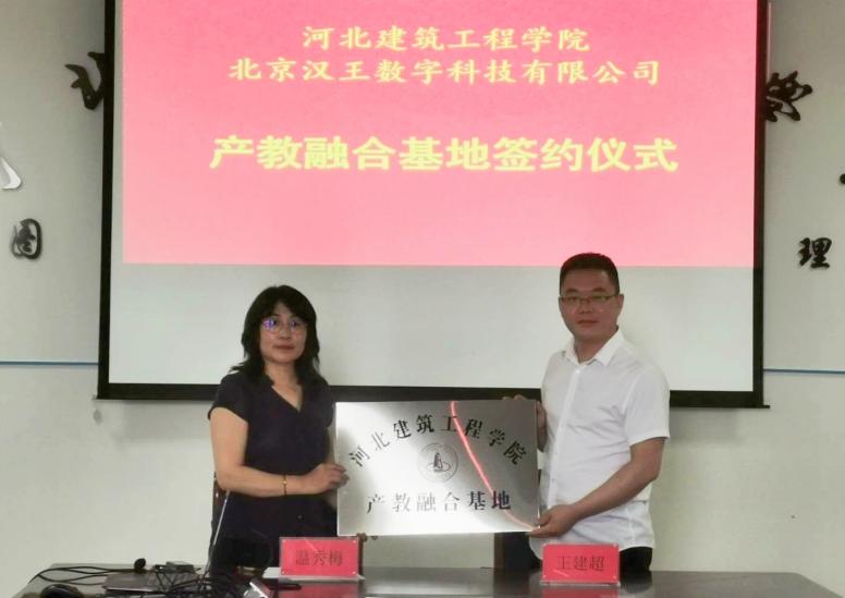 随后,信息管理系主任温秀梅与北京汉王数字科技有限公司人事部经理王建超签订了产教融合校企合作协议,并举行了“河北建筑工程学院产教融合基地”、“北京汉王数字科技有限公司重点人才培养基地”授牌仪式。