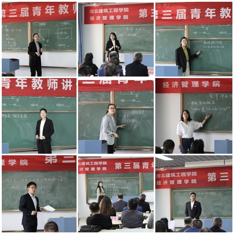 为深入贯彻落实习近平总书记关于教育思想的系列讲话精神,全方位提升教师理论传授、智慧启迪、传道授业、品德塑造、价值引领的育人水平,经济管理学院以党史学习教育为契机,多措并举促进青年教师学史明理、学史增信、学史崇德、学史力行,先后利用3月30日和4月6日两个下午在明德楼207教室组织举办了第三届青年教师讲课比赛。学院班子成员与全体教师全程观摩了比赛,学生党员以线上形式观看了比赛。教务处梁建明处长、屈建萍教授出席活动。本次比赛由院工会主席高红主持。