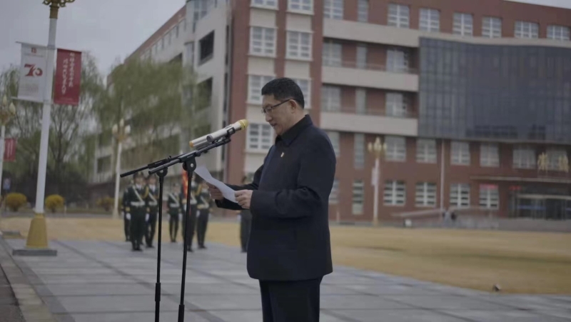 4月12日早晨,我校在升旗台举行了2020-2021学年第二学期“学党史、强信念、跟党走”升国旗仪式。学校领导、全体处级干部以及师生代表共计近400人参加了此次活动。仪式由校长师涌江主持,王海龙书记致辞。