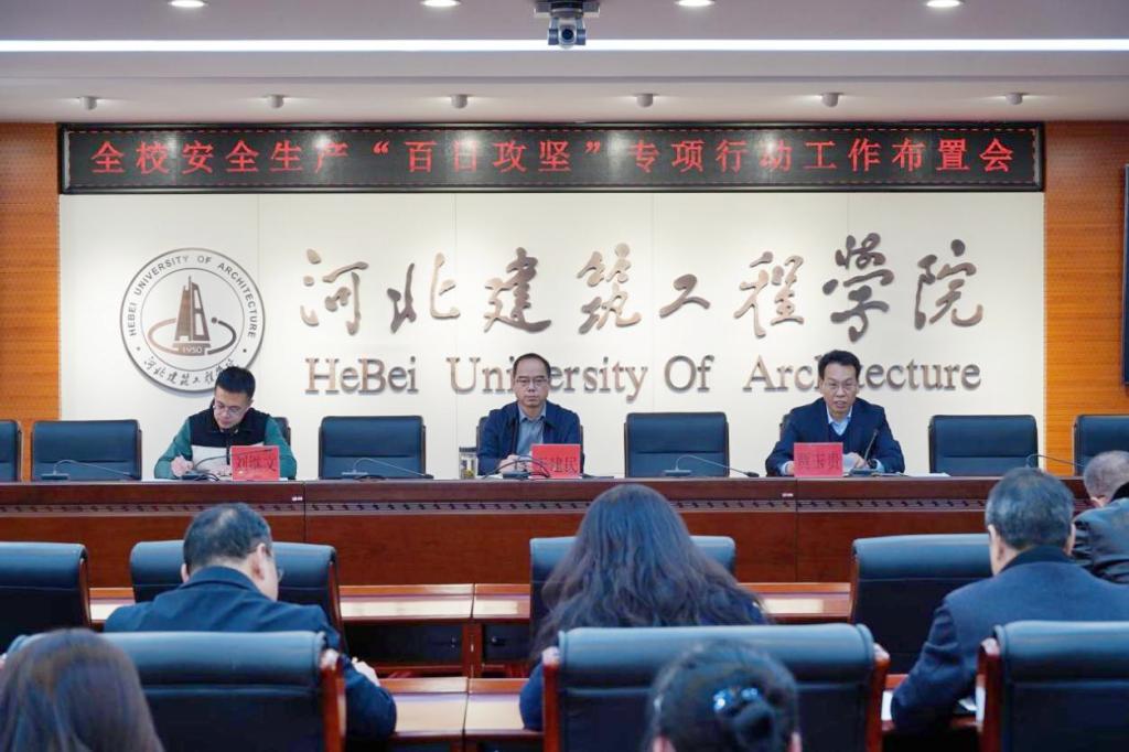 为确保岁末年初及全国两会、省两会期间我校安全形势持续稳定,1月6日,我校召开安全生产“百日攻坚”专项行动工作布置会,以“严标准、实举措”的态度,全面启动岁末年初校园安全守护行动。校长王建民出席会议并讲话,副校长贾玉贵主持会议,各部门院系负责人参加会议。