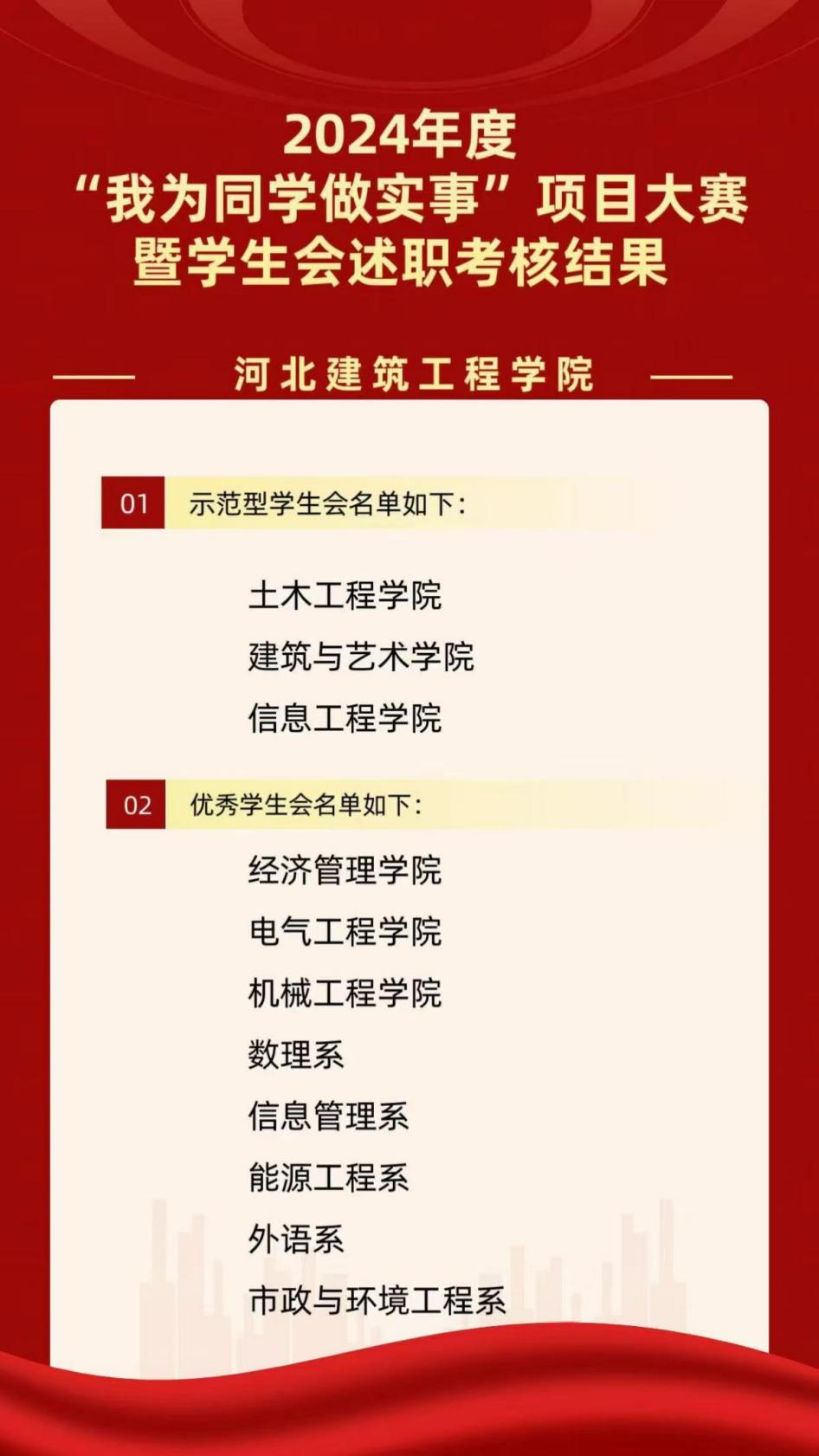 各院系学生会围绕“我为同学做实事”项目建设成果,重点从思想引领、权益服务、深化改革等方面依次进行述职汇报,通过回顾过去一年取得的工作成绩和特色亮点,查摆短板弱项,并提出下一步工作展望。